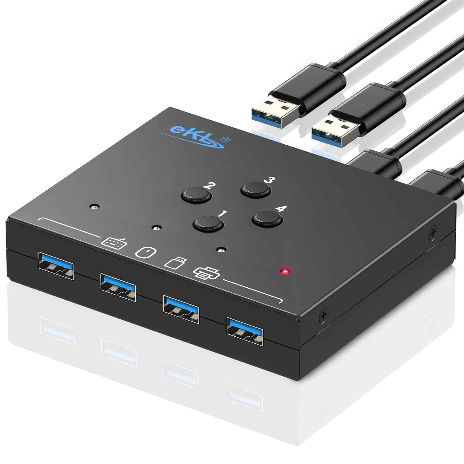 The eKL USB 3.0 Switch solves a common problem for anyone working with multiple computers. You can connect up to four USB devices—keyboards, mice, printers, storage drives, and more—and switch them between four different computers with just a button press. The metal construction provides durability that plastic alternatives often lack.