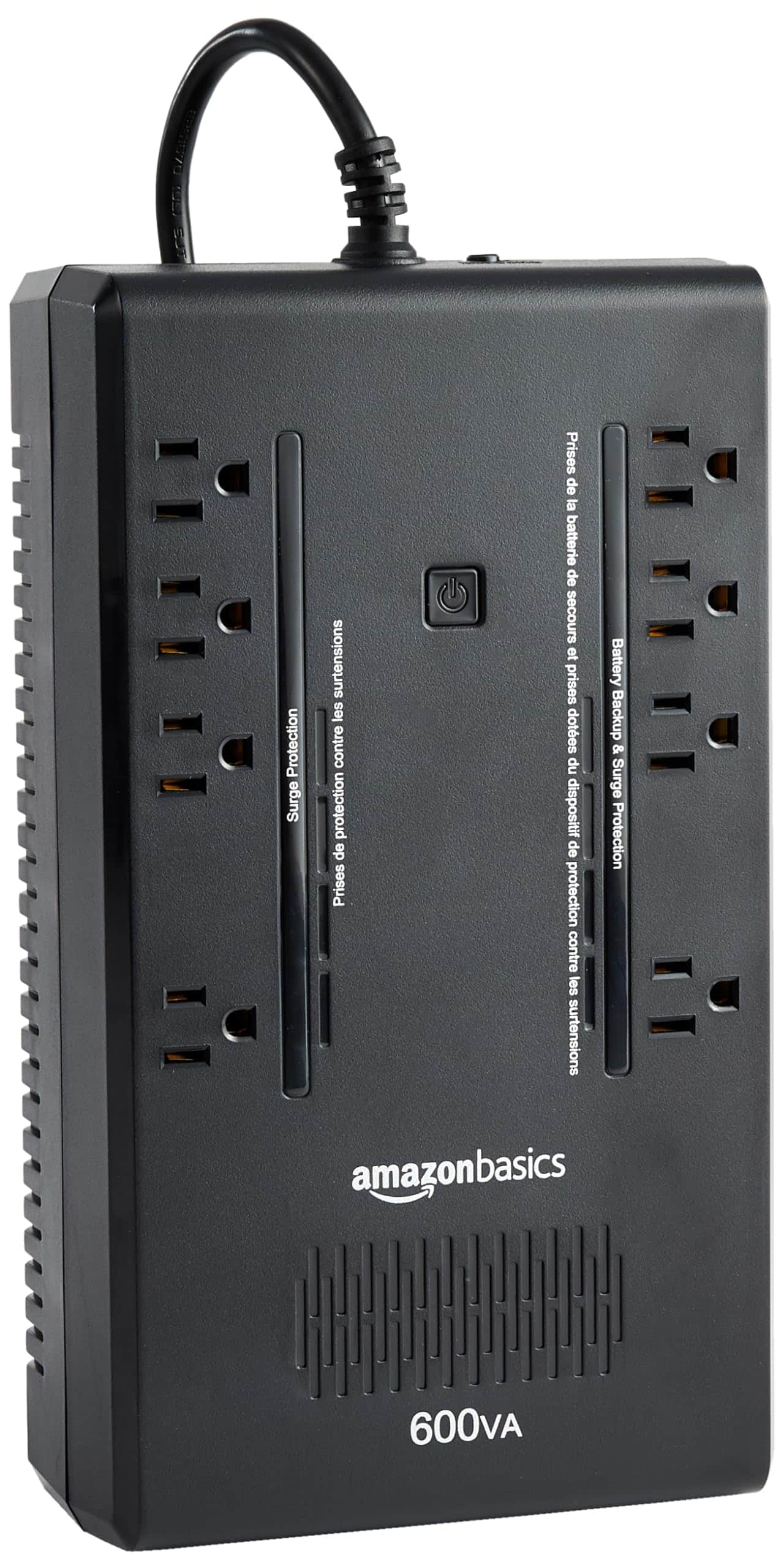 The Amazon Basics UPS Battery Backup delivers solid performance for everyday power protection needs. With 600VA/360W capacity, it’s ideal for safeguarding desktop computers, home networking equipment, and entertainment devices. Four of the eight outlets provide both surge protection and battery backup, while the remaining four offer surge protection only.