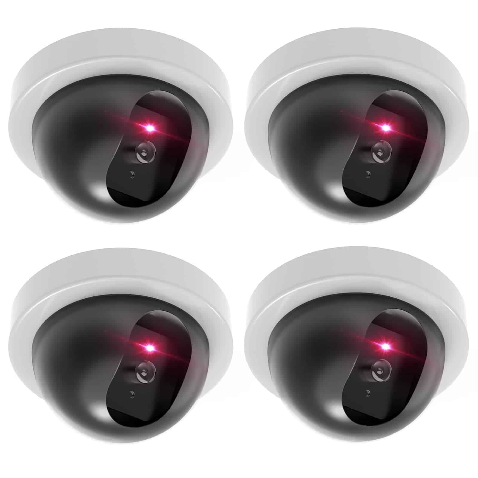 These dome-style dummy cameras from WALI give you the appearance of security without the high cost of functional surveillance systems. The set includes four white dome cameras that feature flashing red LED lights designed to make potential intruders think twice. Each camera comes with warning stickers that further enhance the deterrent effect when placed visibly on windows or doors.